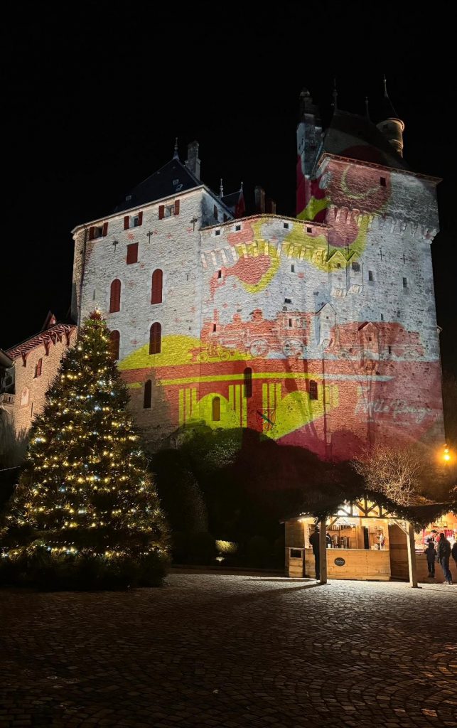 À quelques minutes d’Annecy, sur les hauteurs du lac, le château prend des allures de conte pendant les fêtes. Pour ceux qui me suivent depuis le lancement du blog, je vous en avais déjà parlé il y a quelques année, lors de ma journée au coeur du territoire du lac d’Annecy. Dès l’arrivée, on se retrouve plongé dans un décor lumineux grâce à un immense sapin illuminé qui donne sur la cour centrale. Ce symbole emblématique accompagne chaque visiteur du soir jusqu’à la tombée de la nuit. La magie de Noël peut commencer !