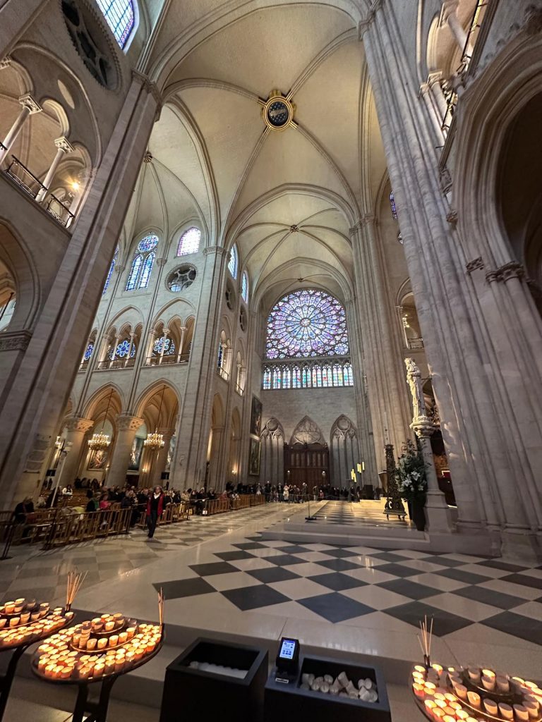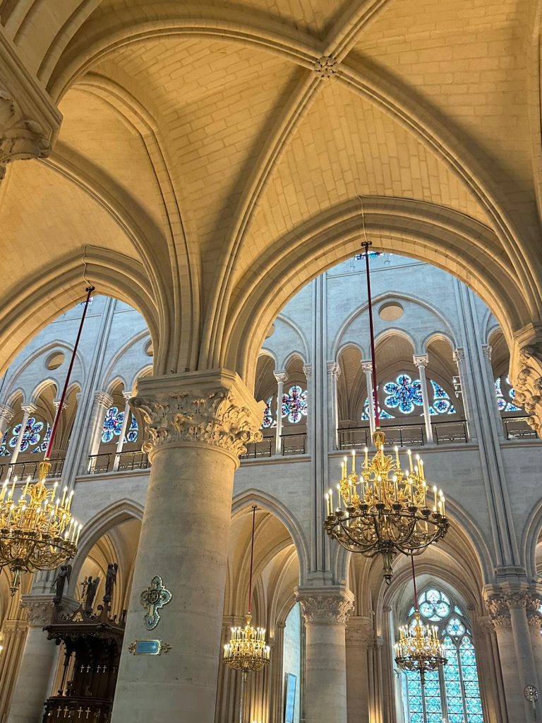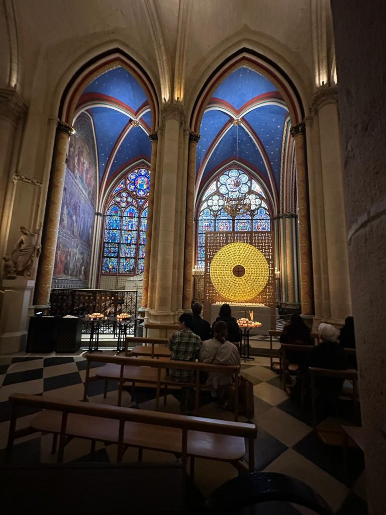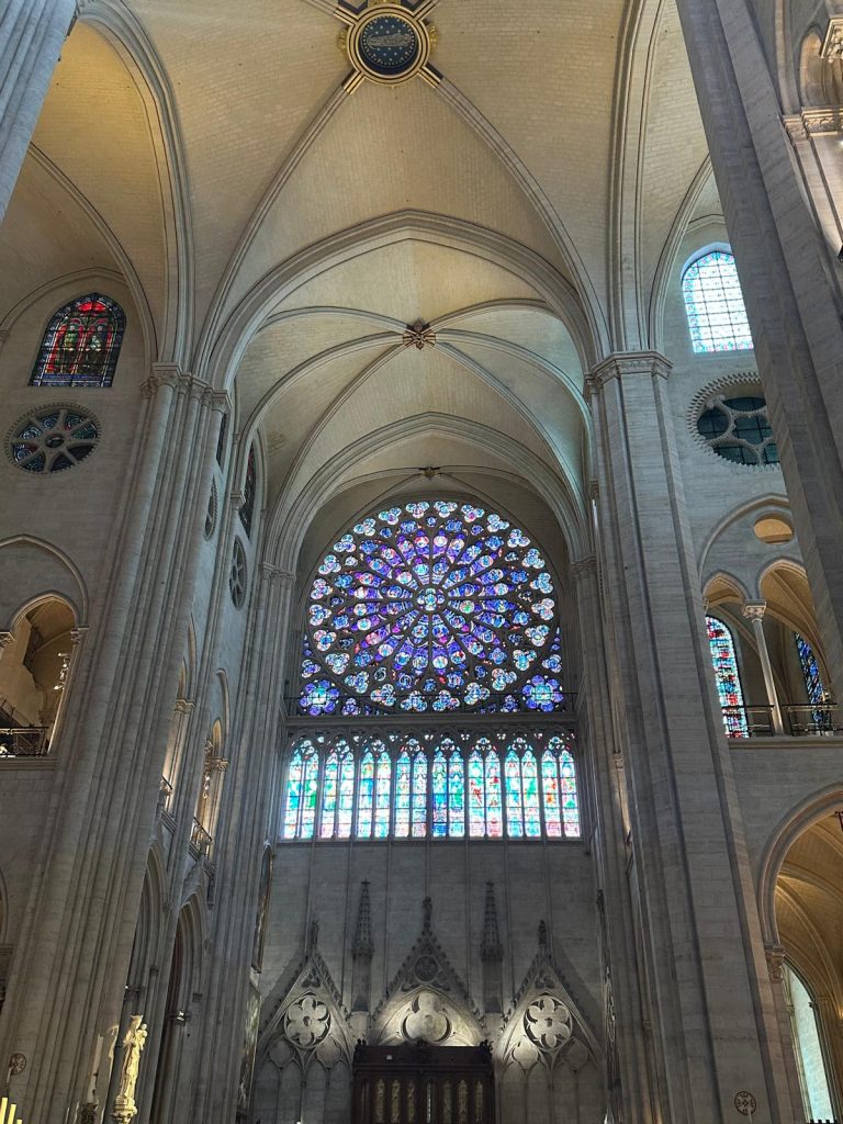 Ce qui frappe en entrant dans Notre-Dame de Paris, c’est d’abord la sensation d’espace. Les volumes, la hauteur des voûtes, la lumière qui traverse les vitraux, les rosaces, les chapelles… tout invite à lever les yeux et à prendre le temps d’observer.